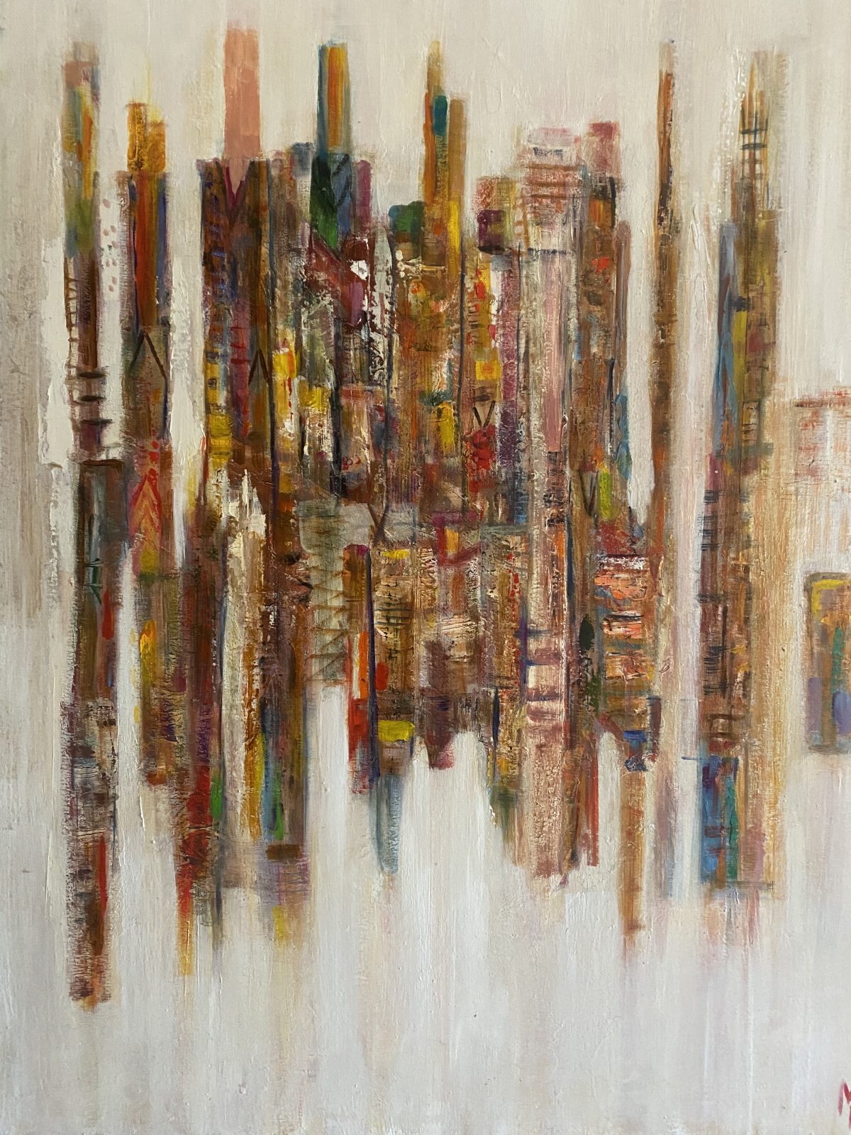 Creating textured oil and acrylic paintings inspired by the Atlantic coastline. After seventeen years in interior design, Moira moved to a seaside village in 2021, where she committed fully to painting — completing a two-year degree and developing her signature atmospheric style.